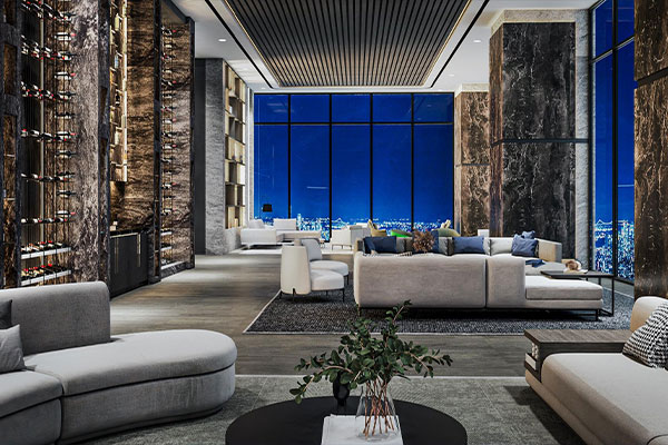 住む方だけが得られる景色を望む、50Fロイヤルサロン。窓外の眺望を愉しみながら寛ぐことができ、心のこもったもてなしが受けられるプライベートラウンジです。住まう方のための特別なフロアです。